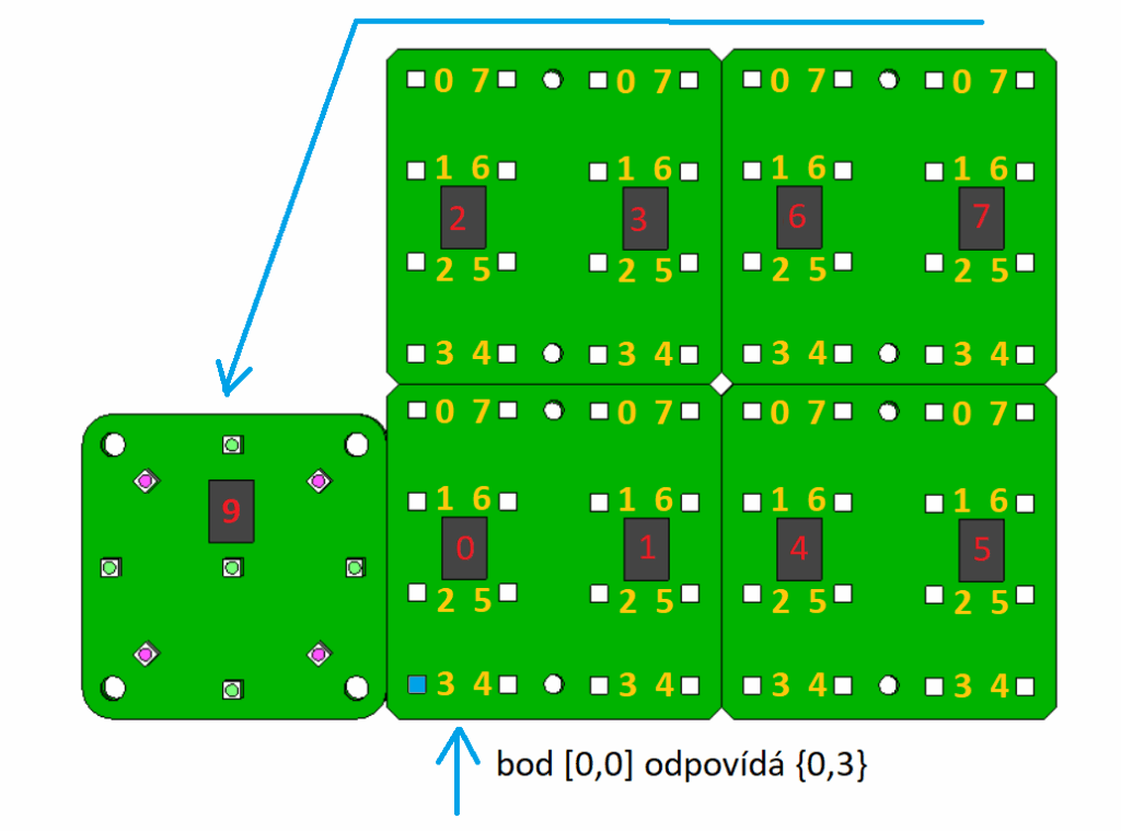 Proměnná ledMap[64] je jednorozměrné pole o 64 prvcích, která obsahuje souřadnice jednotlivých ledek, jak jsou uspořádány za sebou.